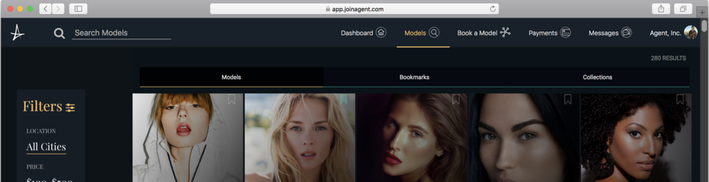 Agent (www.agent.com ) is a Santa Monica, CA based company aiming to disrupt the talent booking process within the multi-billion dollar modeling industry. When combined with photographers, makeup artists, stylists, etc. it is a $7.2 billion U.S. opportunity. Our platform already has in excess of 20,000 registered models. We streamline the booking process by efficiently connecting talent with clients and take 15% of every transaction.