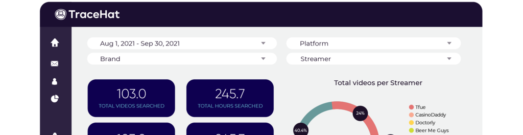 TraceHat is the only platform that offers brand and keyword identification across multiple streaming platforms.