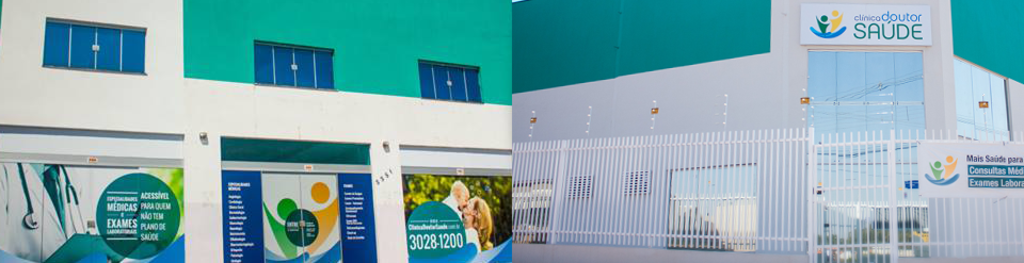 2 policlínicas médicas populares com um laboratório de análises clínicas.