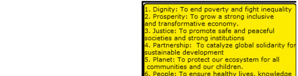 The 6 key values of the SDG program are dignity, people, prosperity, planet, justice, and partnership.