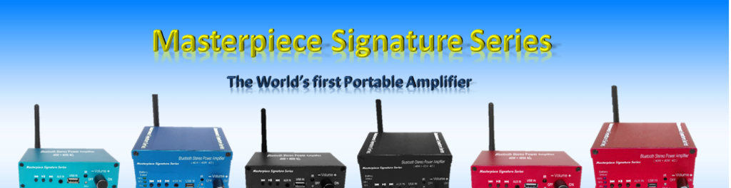 Masterpiece Corp is on the cutting edge with technology that we have created the first Bluetooth Portable Amplifier with a re-chargeable battery for taking music in Stereo on the go of the Masterpiece Signature Series.
