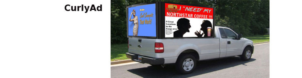 Interactive Mobile Advertising system designed to grab attention. Self-contained HD screen ads graphics. Turn-key pickup truck mounted. Geo-fenced, Bid ad cost.
