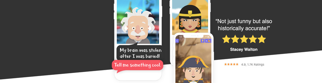 Einee (SEIS) teaches and inspires children 6-14 by letting them chat with famous real-life characters like Einstein and Cleopatra.