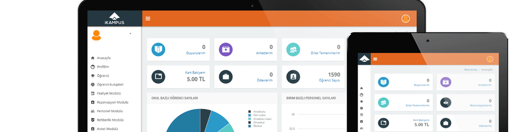 iKAMPÜS, eğitim pazarında entegre okul yönetim sistemleriyle okulların; Okul Yönetimi, Tahsilat Yönetimi ve Güvenlik Yönetimi problemlerini çözmektedir.