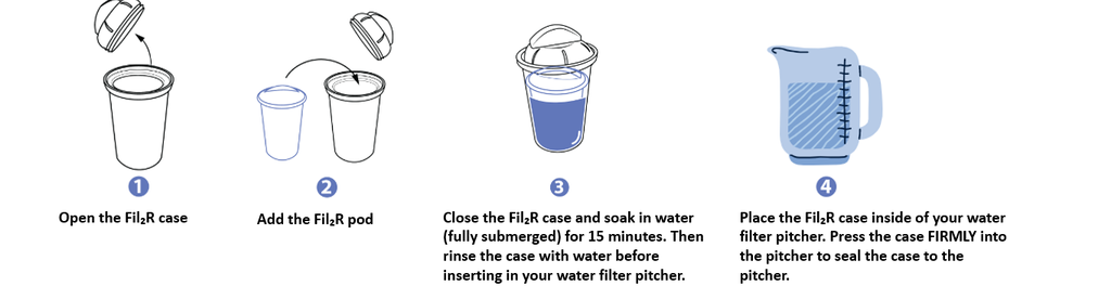 We sell sustainable water filtration systems. Our first product is a reusable Fil₂R case (patent pending) that is compatible with most BRITA and PUR water pitchers. Much like a water bottle the case is reusable and lasts years. Instead of throwing the filter in the trash every two months, users replace of pod of activated carbon (made from natural coconut shells. Also, we are currently prototyping our second product a plastic free water pitcher.