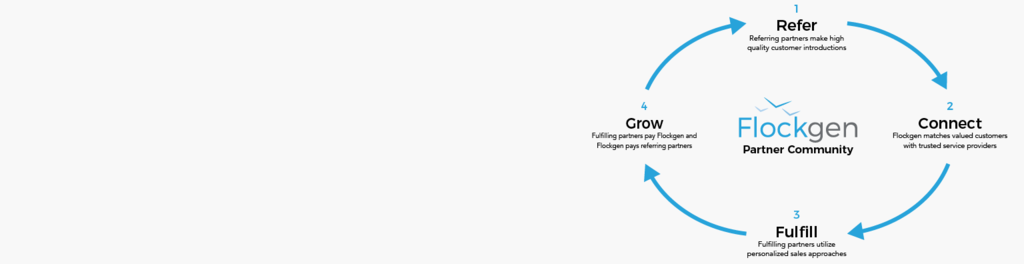 Flockgen's multi-sided referral sales platform connects commercial customers with energy service providers through low-cost, pay-for-success referrals.