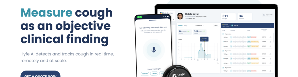 Hyfe is the global market leader in quantifying cough, used daily by thousands of researchers, pharma, patients and healthy people across the world. Hyfe’s AI models are trained on the world’s most diverse dataset of cough sounds, containing more than 260M real-world samples, collected across +100 countries.
