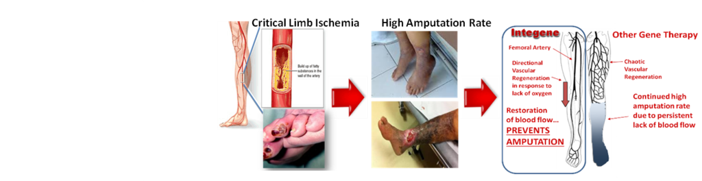 Integene is developing a platform gene-therapy technology capable of treating a broad base of vascular diseases, including peripheral arterial disease (PAD), critical limb ischemia (CLI), coronary artery disease (CAD) and others. An experienced management team in place, whose business strategy is to focus first on end-stage CLI, in which the company is seeking Orphan Drug designation. A Phase I/II human clinical study is planned for 2016.