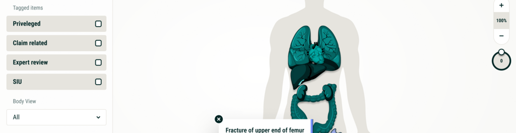 Patent pending system of reorganizing text based medical records into an interactive visual interface of patient anatomy.