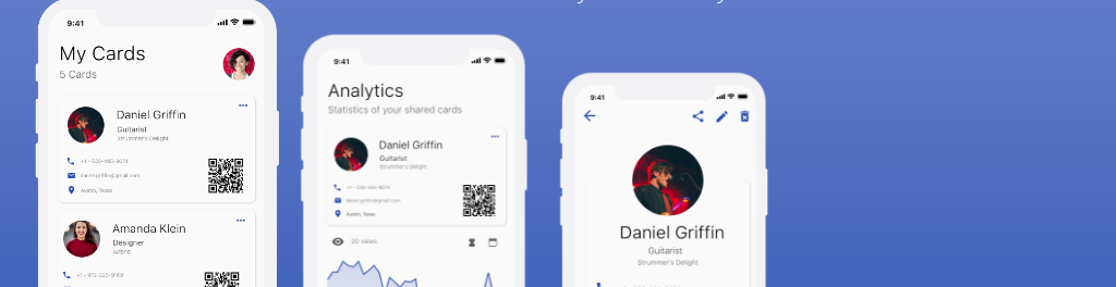 KCards is a one stop replacement for paper cards. kcards helps you to easily share your cards with other users and get real-time analytics on the shared cards.