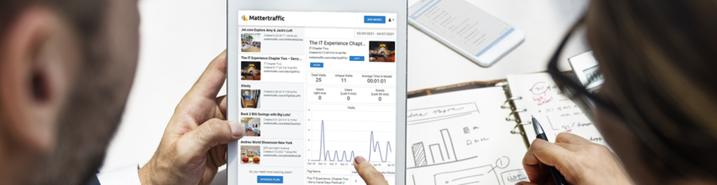 Mattertraffic is a data analytics platform for immersive 3D digital twin and mixed reality applications that helps businesses increase sales within metaverse and mixed reality experiences by gaining a deeper understanding of how visitors interact within the immersive experience, and what they look at, click on, or purchase.