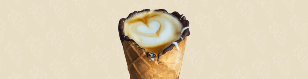cafe cone serving coffee in edible chocolate cones.