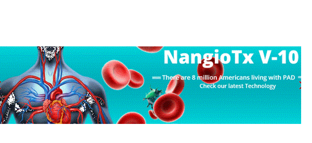 NangioTx patented a peptide drug that generates new blood vessels in ischemic muscle, to treat Peripheral Artery Disease (PAD). It affects 8 MM individuals in the USA. Preclinical efficacy of V-10 has been shown in an acute hind-limb ischemia model in mice. A patent has been granted - U.S. Utility App. 14/454,802. 2014.