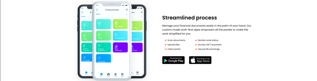 To solve the document and task management problems, we've developed our cloud-based software DocuPort to automate the workflow, task delegation, and document management. Along with the web app, DocuPort iOS and Android apps help the client upload documents and access their financials with ease.