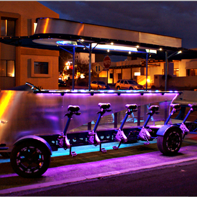 Pono Pedaler allows customers to travel the city on a 14 person pedal powered vehicle. Passengers are permitted to consume beer or wine on board.
