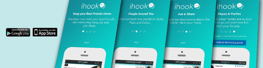 Our mobile app, iHook, wants to create a better, sociable world, encouraging people to socialize more in real life. Parties, Places, Friends, all in one App!
