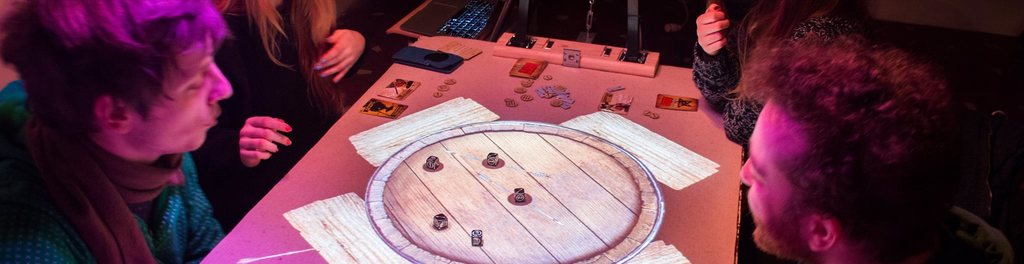 Atmo is a board game console that blends physical and digital worlds. Games come to life via projected dynamic boards and gameplay based sound and lighting. Games are controlled by physical pieces and actions, creating an immersive augmented reality social gaming experience; no funky glasses needed.