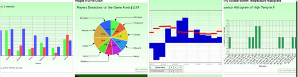 Quantopix provides a platform (QAS) for data analysis and for building easy to write analytics apps in the cloud for use with SQL Databases anywhere on the net.