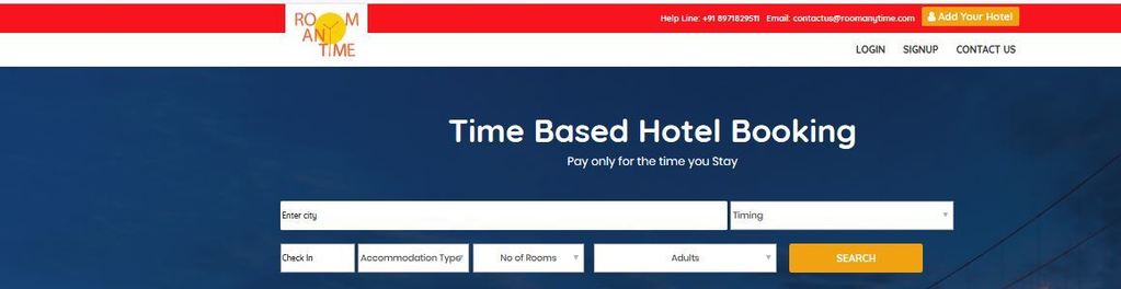 Our Company Featherlight Multitrade Pvt. Ltd . Started Online Hotel Booking Website Portal called Roomanytime.com . Its a Time Based Hotel Booking Website Portal which lets customers Book Hotels and Pay only for the time they Stay at Hotel. Which not only helps them to save money but also helps Hotels Get More Bookings in a Single Day.