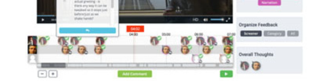 ScreeningRoom is a revolutionary new cloud-based platform for independent filmmakers, video content creators and video journalists. The ScreeningRoom platform allows anyone, anywhere in the world to easily upload videos and begin collaborating with friends and colleagues to get valuable feedback. Feedback appears as time-coded thought bubbles beneath the video.