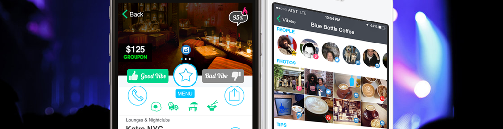 Vibespotr shows you the “Best Vibes" at the right time and place by combining nearby “social buzz” with your personal tastes.