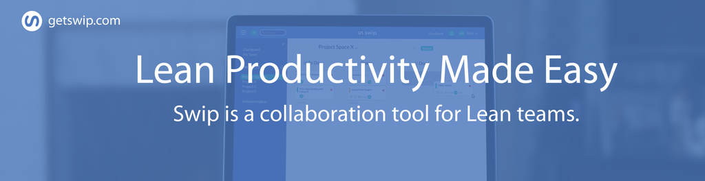 Swip is a Lean collaboration platform for your team. We provide you with the tools and guidance needed to get started and leverage Lean for your business. By giving actionable tips and insights based on your interaction with Swip, we help improve your performance and embrace the culture of continuous improvement.