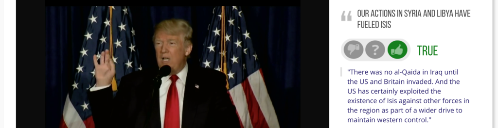 We are a real-time political fact checking service. Our small team of researchers, with the help of our proprietary software, can see whether the statement being made is true, false, or a contradiction of past positions. Before the candidate has finished their statement, an onscreen graphic shows whether the statement is true as well as a collection of contextual facts with hyperlinks for the curious listener.