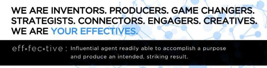 WE ARE INVENTORS. PRODUCERS. GAME CHANGERS. STRATEGISTS. CONNECTORS. ENGAGERS. CREATIVES. WE ARE YOUR EFFECTIVES.