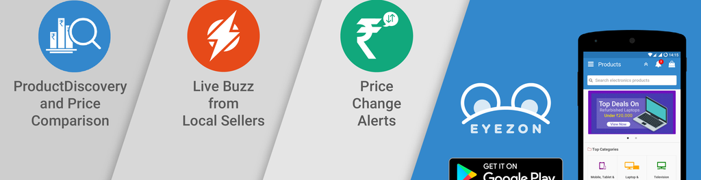 Eyezon also comes up with a unique shopping experience which allows a user to get live price for a product from the local sellers. Eyezon provides a platform for the local sellers to list their products online and also provide offers/sale in realtime using eyezon's live quote feature. In this way local sellers can get a competitive edge over online stores.