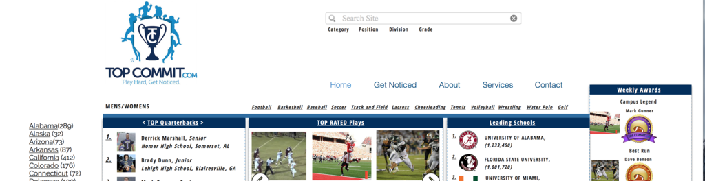 We are TopCommit, a revolutionary media and entertainment website changing the way recruiting is handled. One of the largest struggles for college recruiters and high school athletes is promoting themselves. We've developed a way to let a players performance do all the talking. Instead of letting the media or a recruiter decide what university you'll end up, why not share your highlight tape directly with the world and let them rank you.