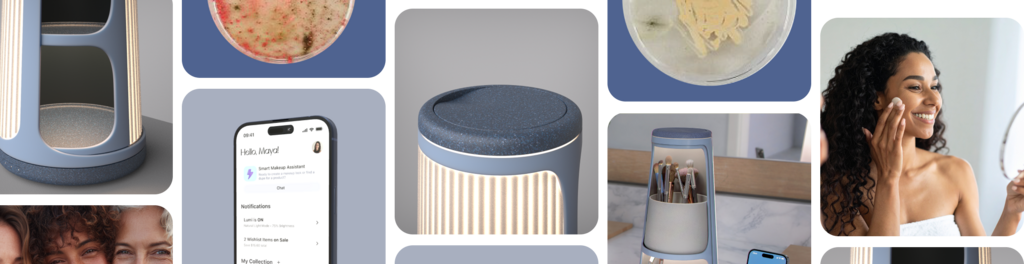 Our first innovation, Lumi, is a UV-powered beauty station that eliminates 99.9% of microbes from makeup and brushes in just 2 minutes - bridging the gap between skincare and makeup while extending the life of beauty products.